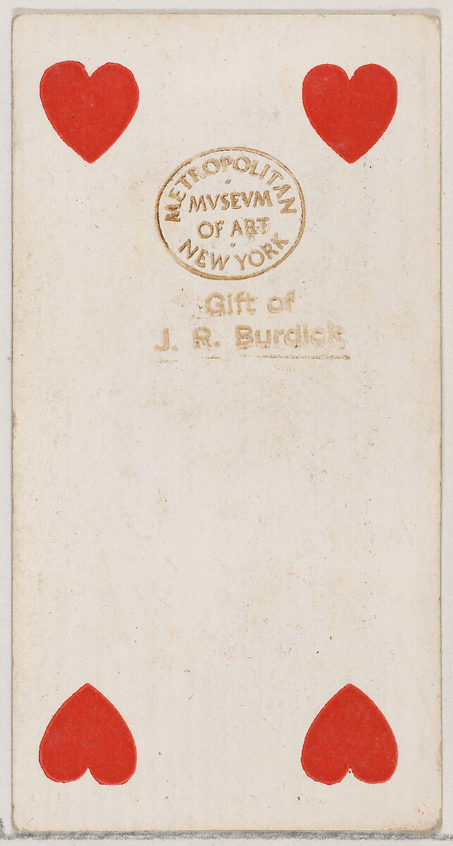 - Title: Four Hearts, from the Playing Cards series (N84) to promote Turkish Cross-Cut Cigarettes for W. Duke, Sons and Co.