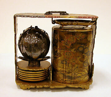 - Medium:Lacquered wood with gold, silver, red togidashimaki-e, hiramaki-e on black and nashiji lacquer ground