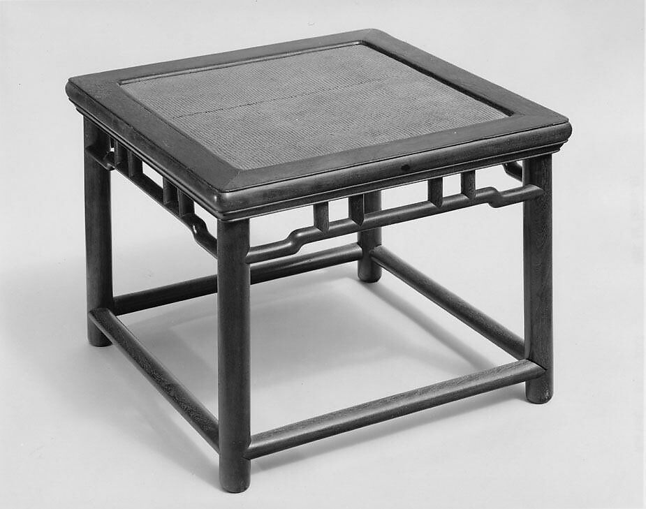 While usually used around the house, these stools doubled as seats on litter-bearer platforms. Holes drilled into the legs enabled them to be attached to the platform; the person sitting on the stool steadied himself by resting his heels on the bottom rung and grasping the sides of the seat.