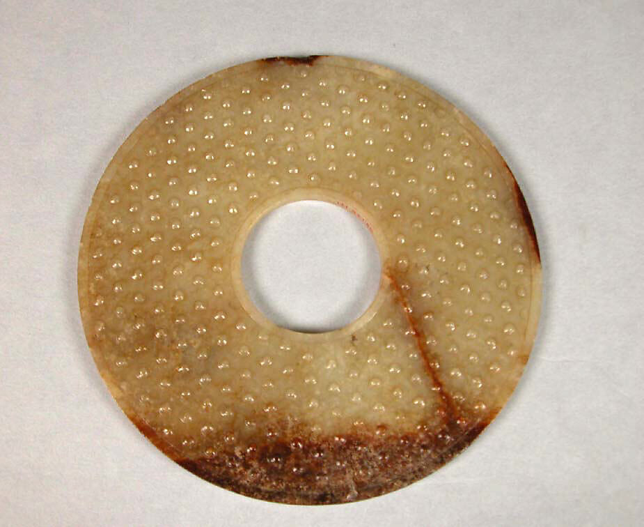 This ancient jade disk was admired by the Qianlong emperor, who had a poetic encomium inscribed along its edge.