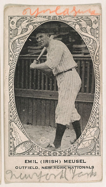 - Title: Emil (Irish) Meusel, Outfield, New York Nationals, from the American Caramel Baseball Players series (E120) for the American Caramel Company