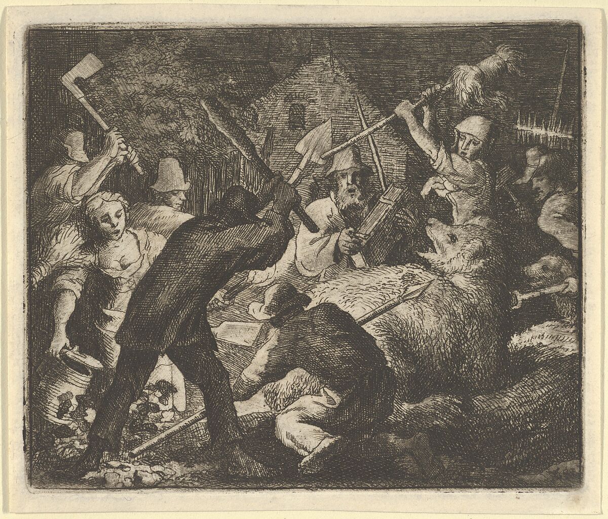 - Title: The Bear is Attacked by the Peasants from Hendrick van Alcmar's Renard The Fox