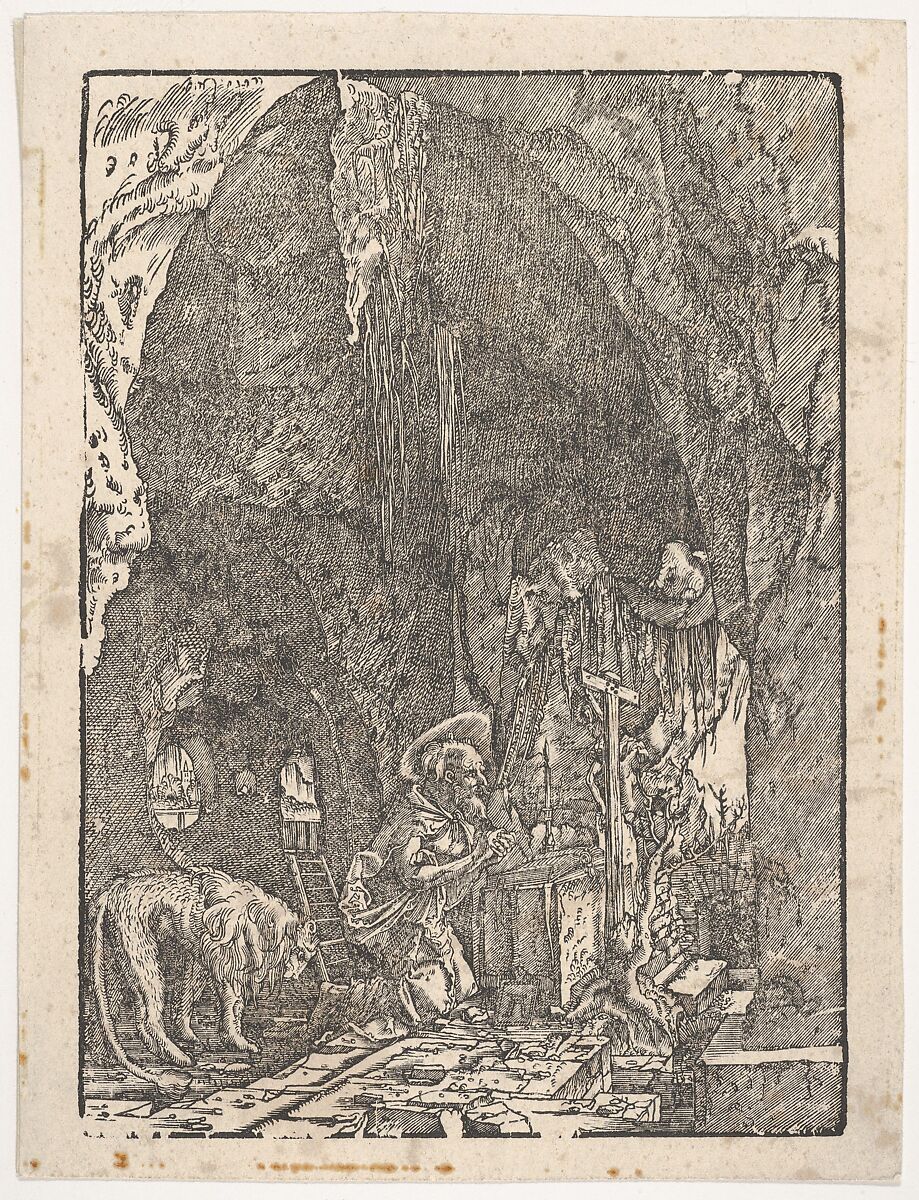 - Title:Saint Jerome in Penitence, in a Cave, from "Holzschnitte alter deutscher Meister in den Original-Platten gesammelt von Hans Albrecht von Derschau"