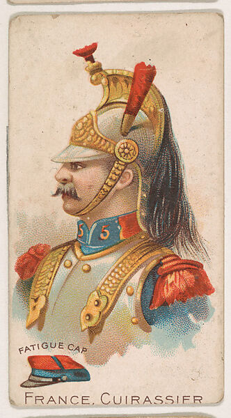 - Title: France, Cuirassier, Fatigue Cap, from the Army Cards series (E1) to promote Army Caramels for The Breisch-Williams Co., Inc.