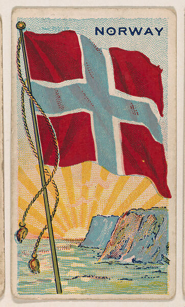 - Title: Flag of Norway, from the New Flags series (E18, Type B) issued by Charles F. Adams Manufacturing Confectioner