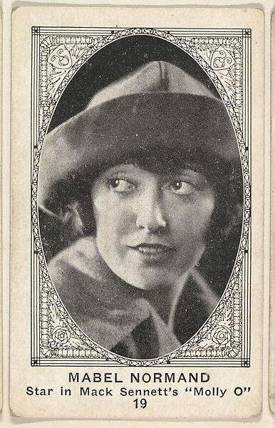 - Title:Card 19, Mabel Normand, Star in Mack Sennett's "Molly O," from the Movie Actors and Actresses series (E123), issued by the American Caramel Company