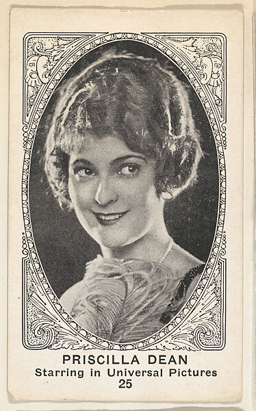- Title: Card 25, Priscilla Dean, Starring in Universal Pictures, from the Movie Actors and Actresses series (E123), issued by the American Caramel Company