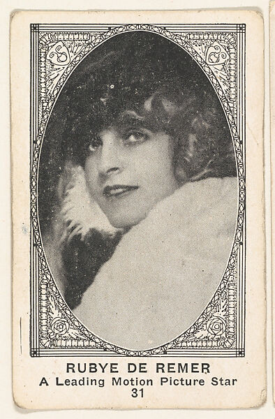 - Title:Card 31, Rubye De Remer, A Leading Motion Picture Star, from the Movie Actors and Actresses series (E123), issued by the American Caramel Company