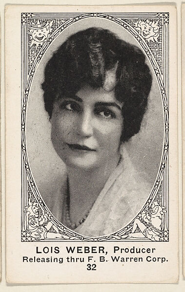 - Title:Card 32, Lois Weber, Producer, Releasing through F.B. Warren Corporation, from the Movie Actors and Actresses series (E123), issued by the American Caramel Company
