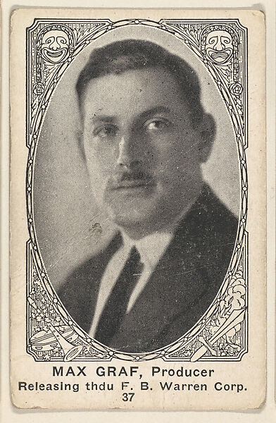 - Title: Card 37, Max Graf, Producer, Releasing through F.B. Warren Corporation, from the Movie Actors and Actresses series (E123), issued by the American Caramel Company