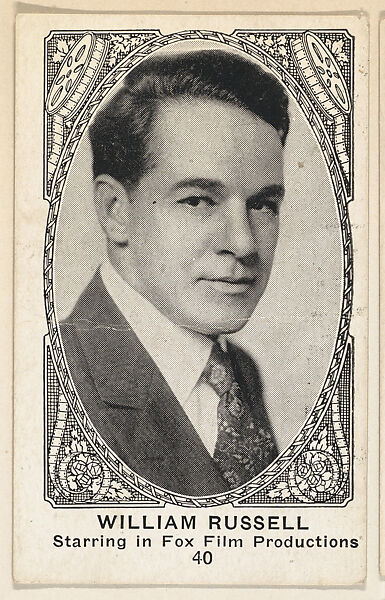 - Title:Card 40, William Russell, Starring in Fox Film Productions, from the Movie Actors and Actresses series (E123), issued by the American Caramel Company