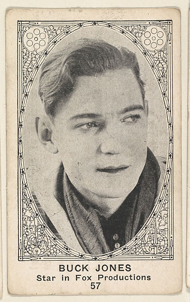 - Title: Card 57, Buck Jones, Star in Fox Productions, from the Movie Actors and Actresses series (E123), issued by the American Caramel Company