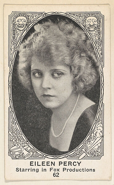 - Title: Card 62, Eileen Percy, Starring in Fox Productions, from the Movie Actors and Actresses series (E123), issued by the American Caramel Company