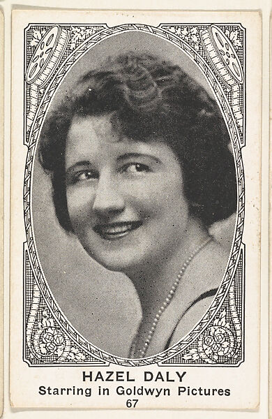 - Title: Card 67, Hazel Daly, Starring in Goldwyn Pictures, from the Movie Actors and Actresses series (E123), issued by the American Caramel Company