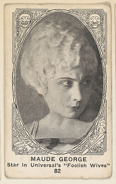 - Title:Card 82, Maude George, Star in Universal's "Foolish Wives," from the Movie Actors and Actresses series (E123), issued by the American Caramel Company