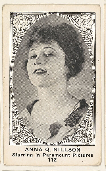 Card 112, Anna Q. Nillson, Starring in Paramount Pictures, from the Movie Actors and Actresses series (E123), issued by the American Caramel Company