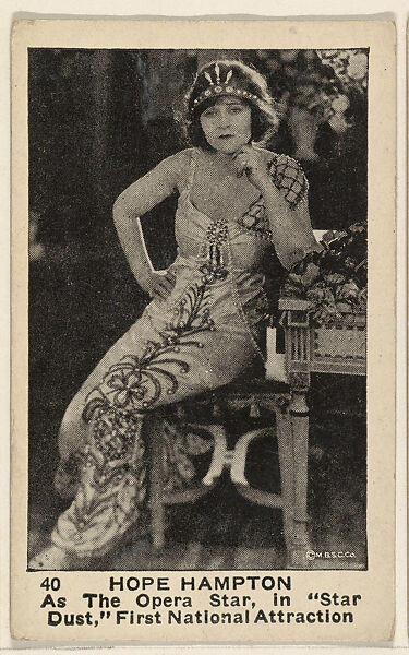 - Title: Card 40, Hope Hampton, as The Opera Star in "Star Dust," First National Attraction, from the Movie Stars series (E124), issued by the American Caramel Company
