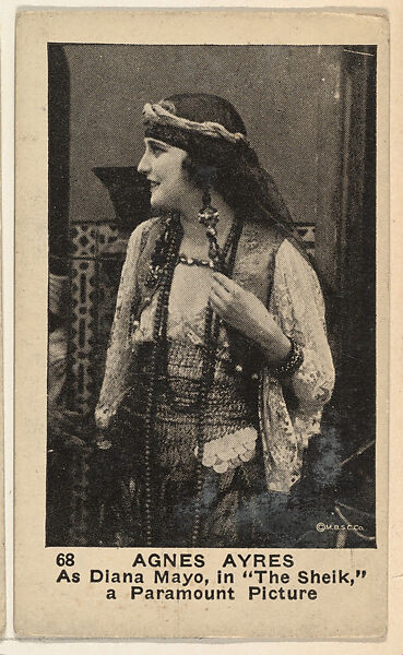 - Title: Card 68, Agnes Ayres, as Diana Mayo in "The Sheik," a Paramount Picture, from the Movie Stars series (E124), issued by the American Caramel Company