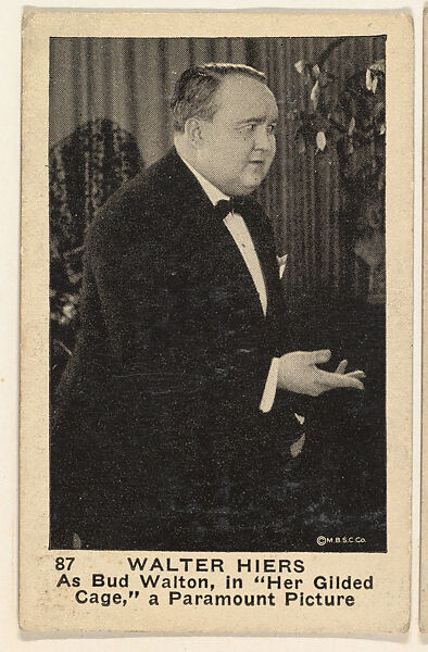 - Title:Card 87, Walter Hiers as Bud Walton in "Her Gilded Cage," a Paramount Picture, from the Movie Stars series (E124), issued by the American Caramel Company