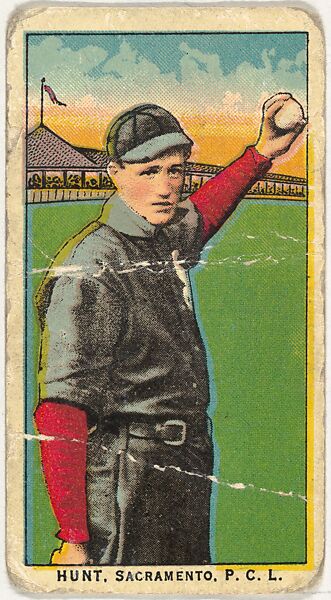 • Title: Hunt, Sacramento, Pacific Coast League, from the "Obak Baseball Players" set (T212), issued by the American Tobacco Company to promote Obak Mouthpiece Cigarettes