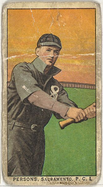 - Title:Persons, Sacramento, Pacific Coast League, from the "Obak Baseball Players" set (T212), issued by the American Tobacco Company to promote Obak Mouthpiece Cigarettes
