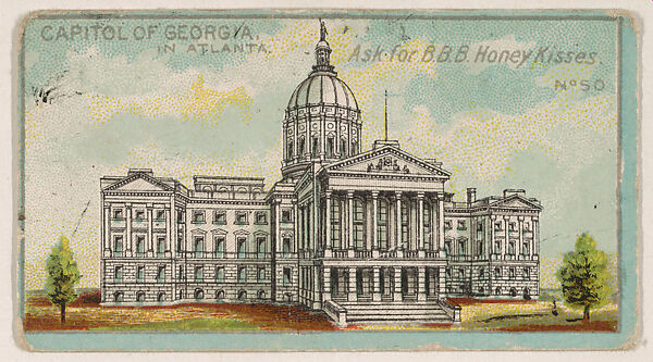 - Title:Number 50, Capitol of Georgia, Atlanta, from the "State Capitols" series (E48), issued for B.B.B. Honey Kisses