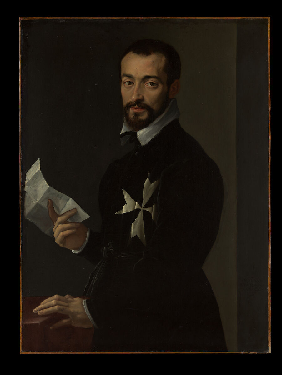 As the cross on his garment indicates, this portrait depicts a Knight of Malta, a member of an ancient and prestigious Catholic military order. The sitter is almost certainly the Florentine Fra Jacopo Salviati (b. 1537), who was the nephew and heir to the Grand Prior of Rome, one of the Order’s highest officers. It was painted in 1566, the year following the Great Siege of Malta, when Ottoman troops attempted to conquer the island and the Knights who ruled it, but were repulsed. The artist is probably the talented Mirabello Cavalori, one of a generation of Florentine artists who sought to infuse a greater naturalness into the formal conventions of portraiture of the time.