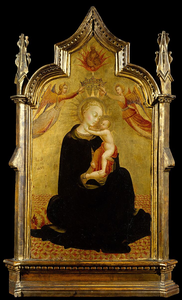 Sassetta worked for a wealthy clientele, executing a limited number of paintings that focus on material splendor and refined detail. The glittering effect created by his technique of scratching into the painted surface to reveal the gold layer beneath—seen in passages like the angels’ wings and garments—would have been enhanced when viewed by candlelight. In this small domestic altarpiece, the Virgin is shown at once humble and exalted as she sits on the floor while angels crown her Queen of Heaven. Her delicate, idealized features are characteristic of Sassetta’s work, as is the emphasis on painting in transparent layers over the gold background.