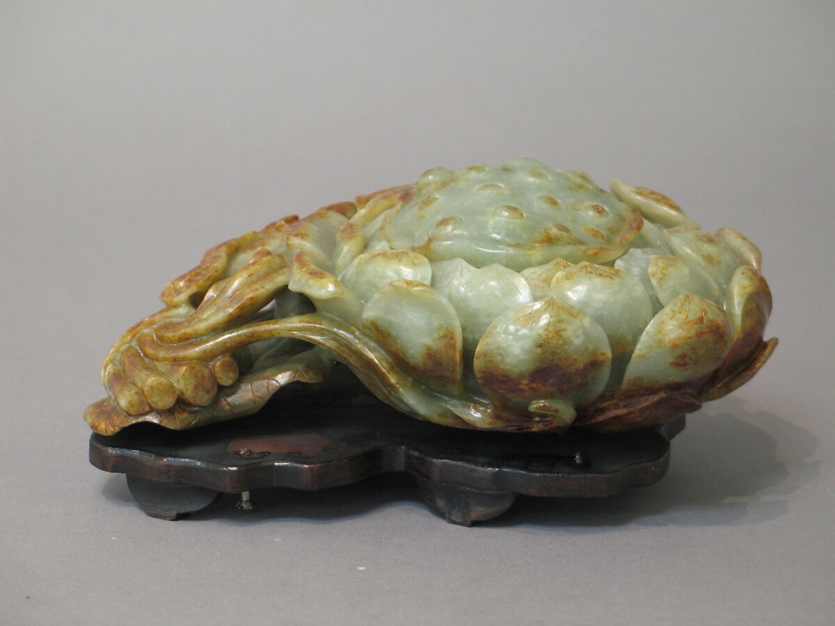 - Medium: Nephrite, light sage-green with a mottling of white and brown, and a heavy staining of variegated dead-oak-leaf
