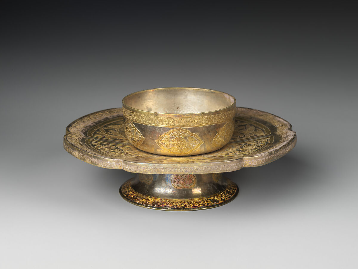 Vessels such as this example were used mainly for upscale drinking parties or special occasions. Precious metal wares, such as gold and silver, often shared a design language with contemporaneous ceramic and lacquer wares.