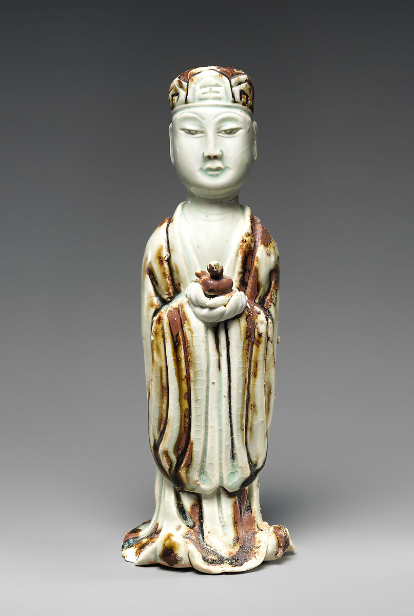 A dramatic change took place in the representation of zodiac animals during the Song dynasty, when they were no longer made as half-human and half-animal figures and their sizes were significantly reduced. The animals, now in the form of small human sculptures generally made of glazed stoneware and decorated with modest colors, were visualized as either civil officials or Daoist practitioners. Their identifying animal was depicted on their hat brim or held in their hands.