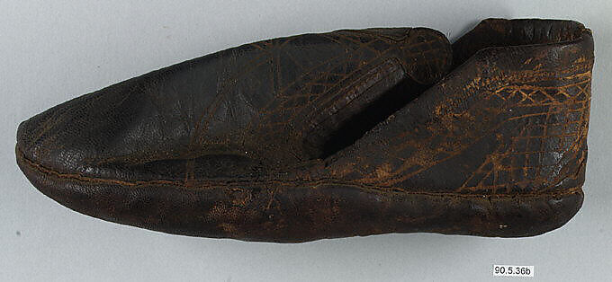 The patterns incised on this sumptuously decorated boot indicate that it was made for the elite of Egypt.