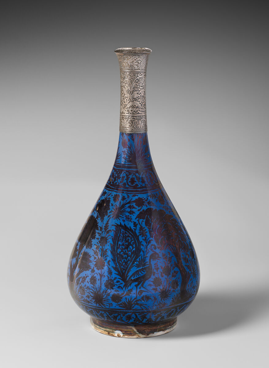 - Medium:Stonepaste; luster-painted on blue glaze under transparent glaze; silver mount