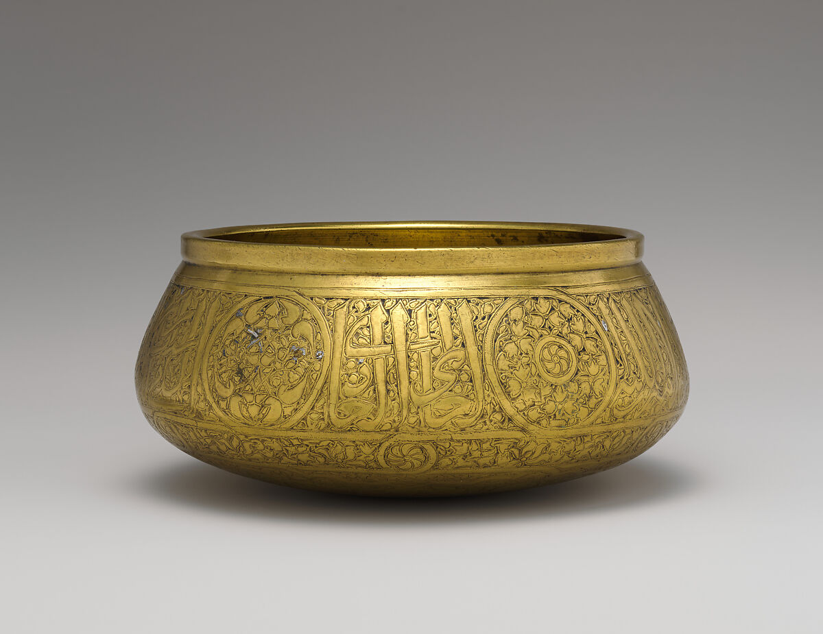 - Medium: Brass; engraved and originally inlaid with silver