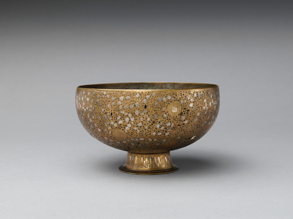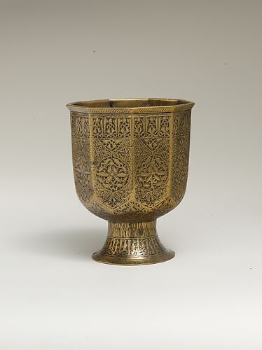 The inlay process used in the decoration of this cup consists of creating cavities on the surface of an object and filling them - in this case, with silver. Silver inlay was especially popular in Iran during the thirteenth and fourteenth centuries.