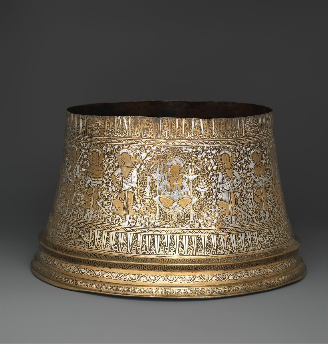 - Medium: Brass; engraved and inlaid with silver