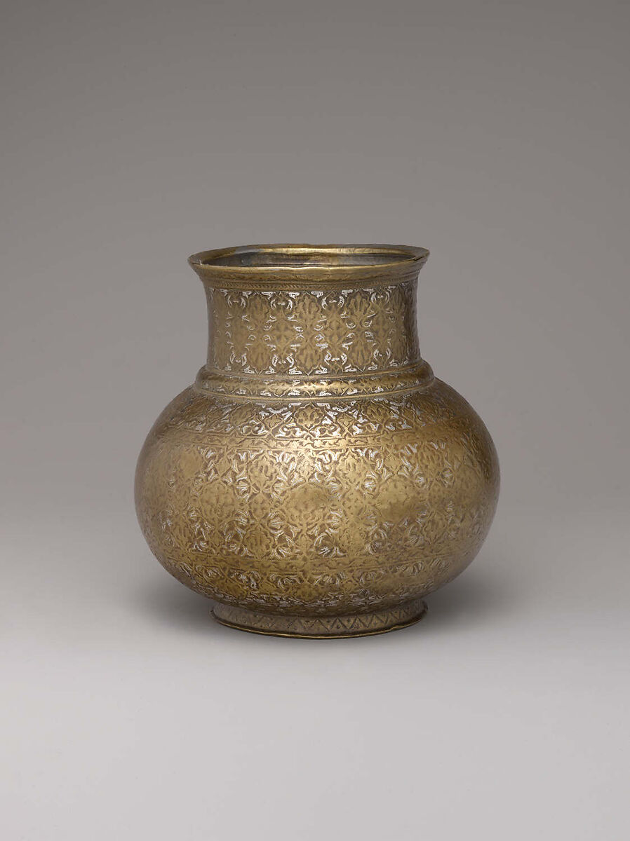 - Medium: Brass; cast and turned, engraved, inlaid with silver and black compound