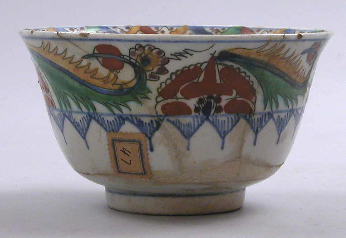 - Medium: Stonepaste; polychrome painted under transparent glaze