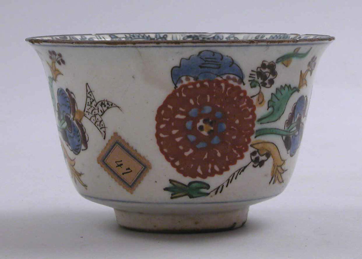 - Medium: Stonepaste; polychrome painted under transparent glaze