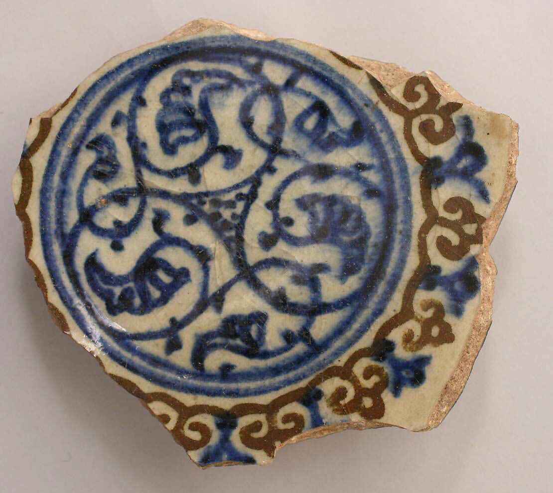 - Medium: Stonepaste; white slip; blue and black underglaze; transparent, colorless glaze