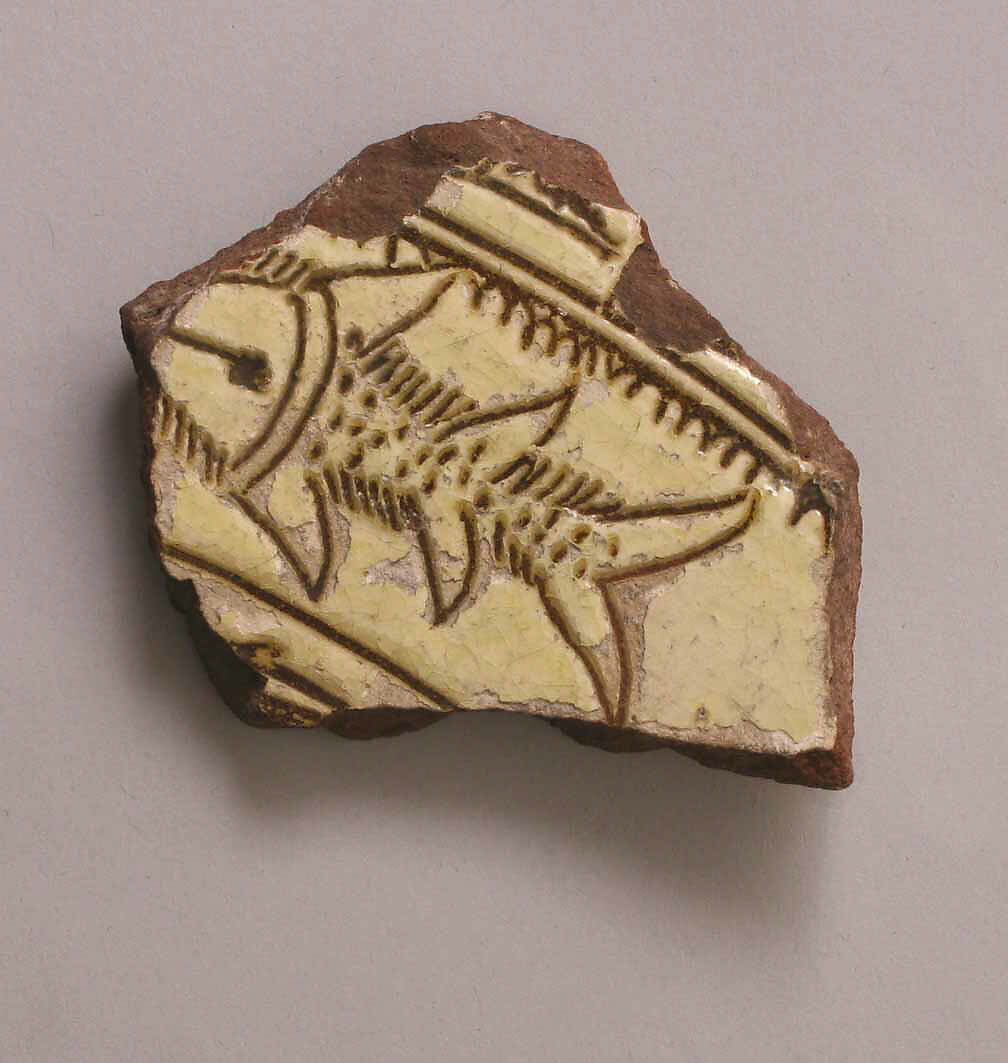 - Medium: Earthenware; incised decoration through a white slip and coloring under transparent glaze