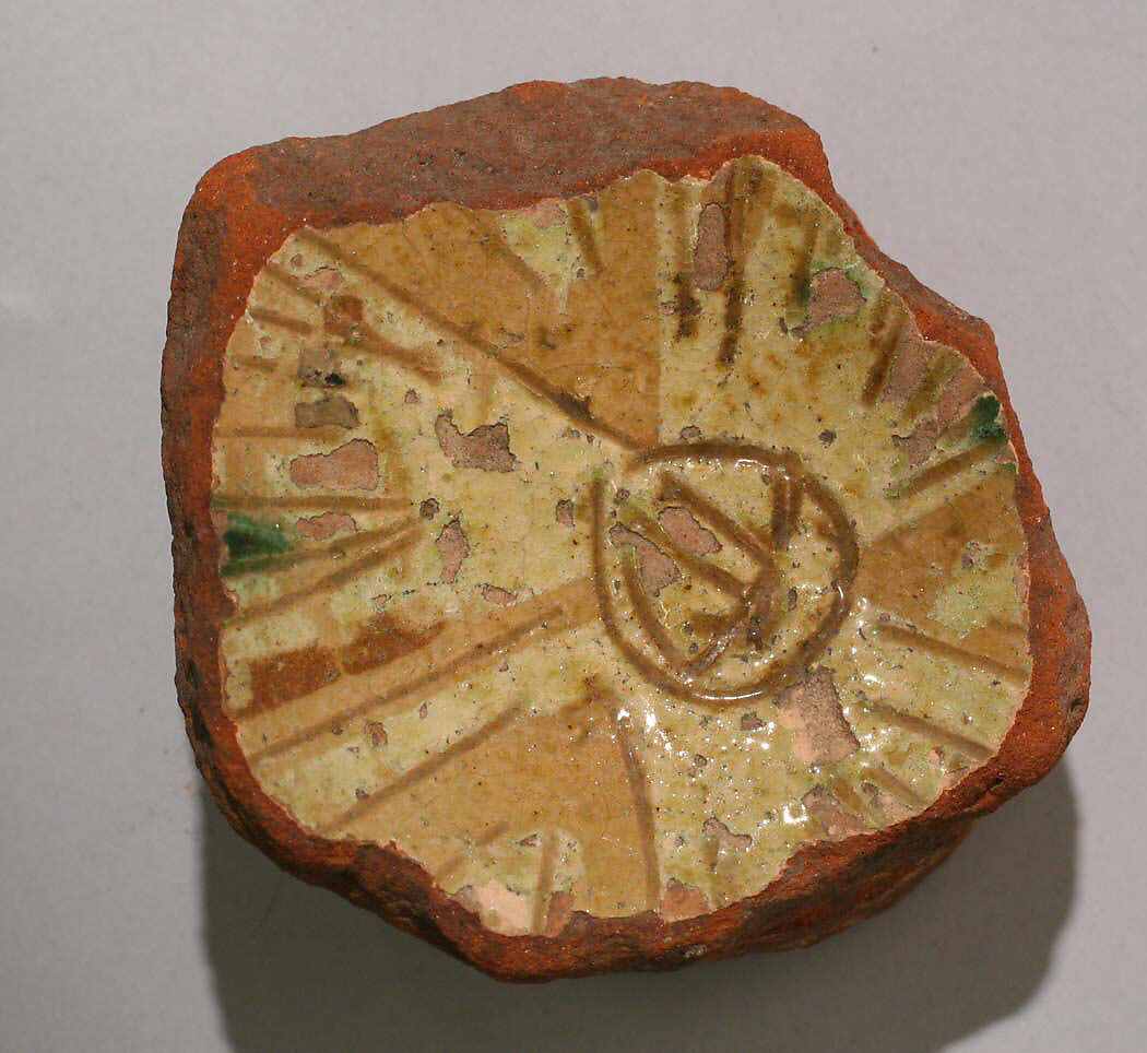 - Medium:Earthenware; incised decoration through white slip and coloring under transparent glaze.