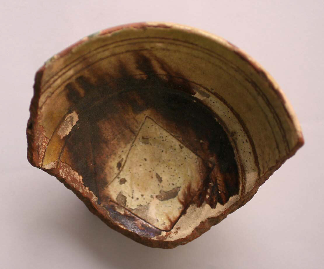 • Medium: Earthenware; incised decoration through white slip and coloring under transparent glaze