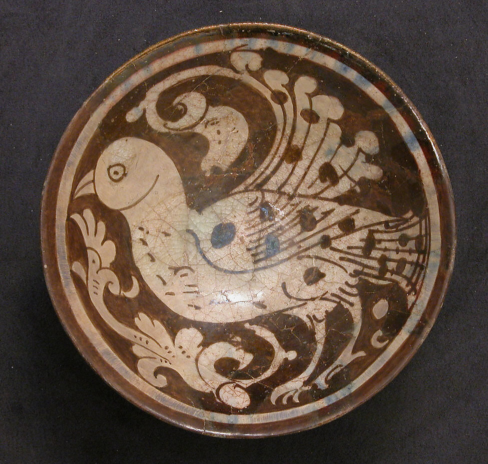 - Medium:Stonepaste; luster-painted on opaque white glaze with monochrome decoration under transparent glaze
