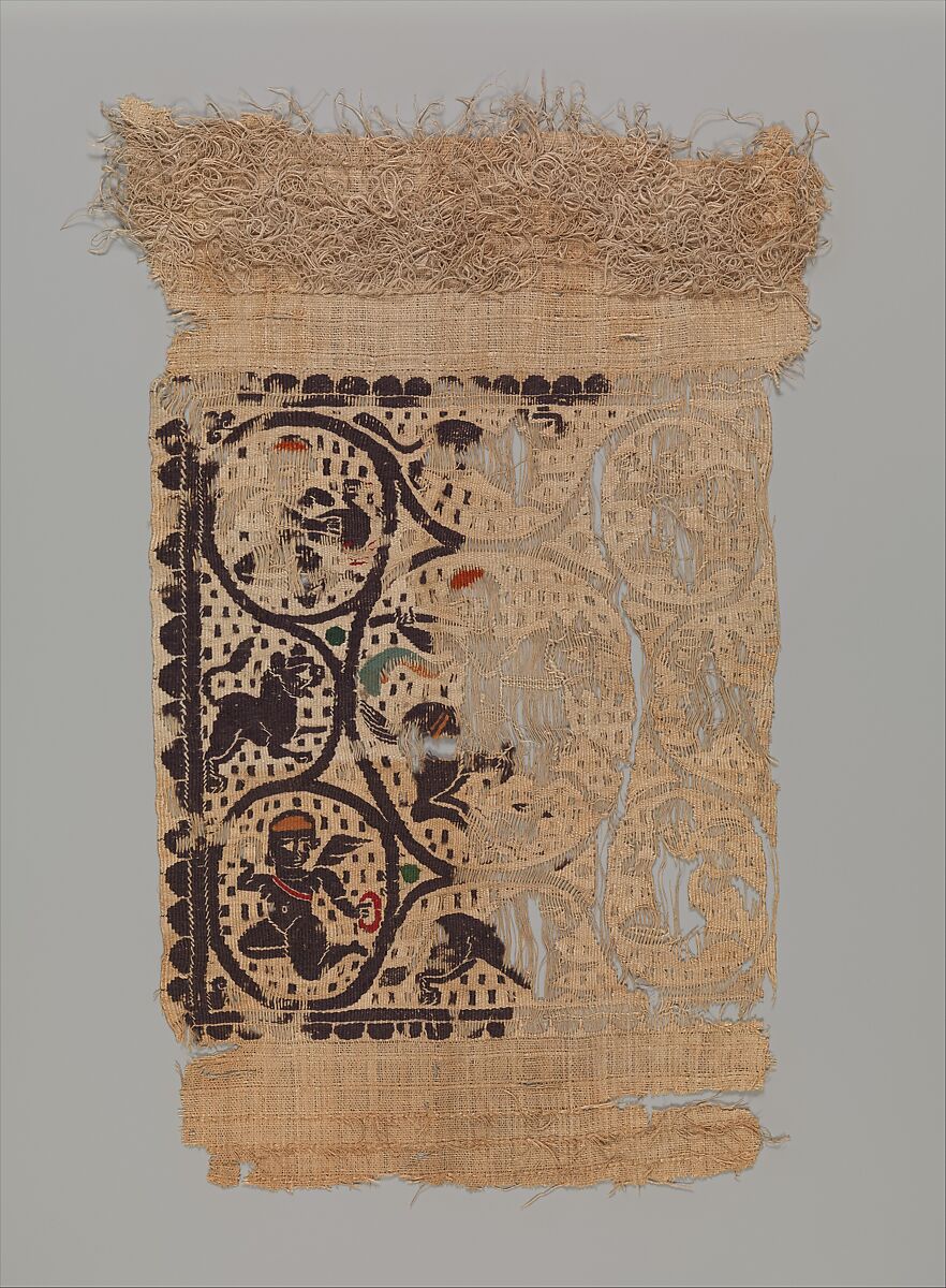 - Medium: Linen, wool; tapestry weave, looped embroidery