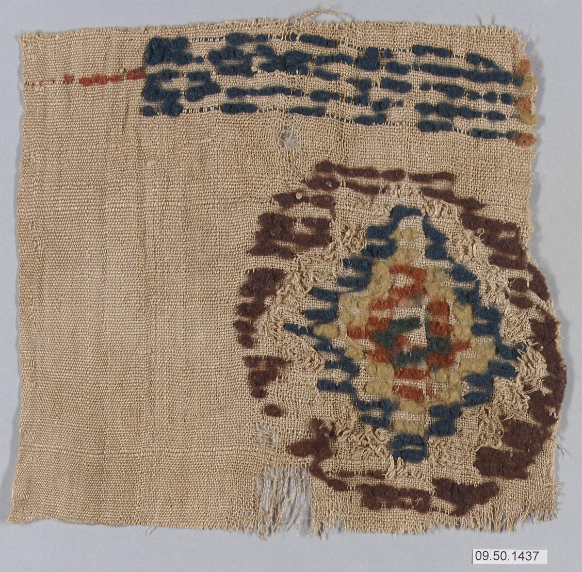 - Medium: Linen, wool; tapestry weave, looped embroidery