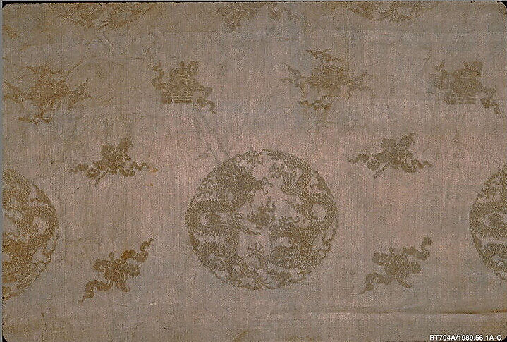 - Medium: Satin damask and satin brocaded in silk and gold-wrapped silk