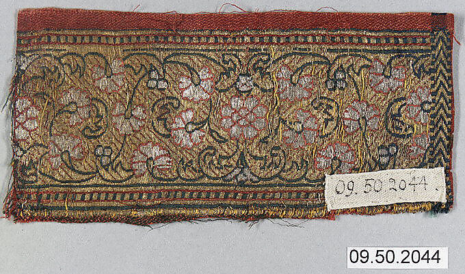 - Medium: Silk and metal wrapped thread; satin weave, brocaded (kincob)
