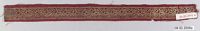 - Medium:Silk and metal wrapped thread; satin weave, brocaded (kincob)