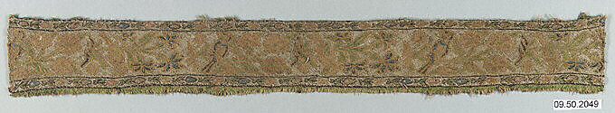 - Medium: Silk, linen, metal wrapped thread; twill weave, brocaded